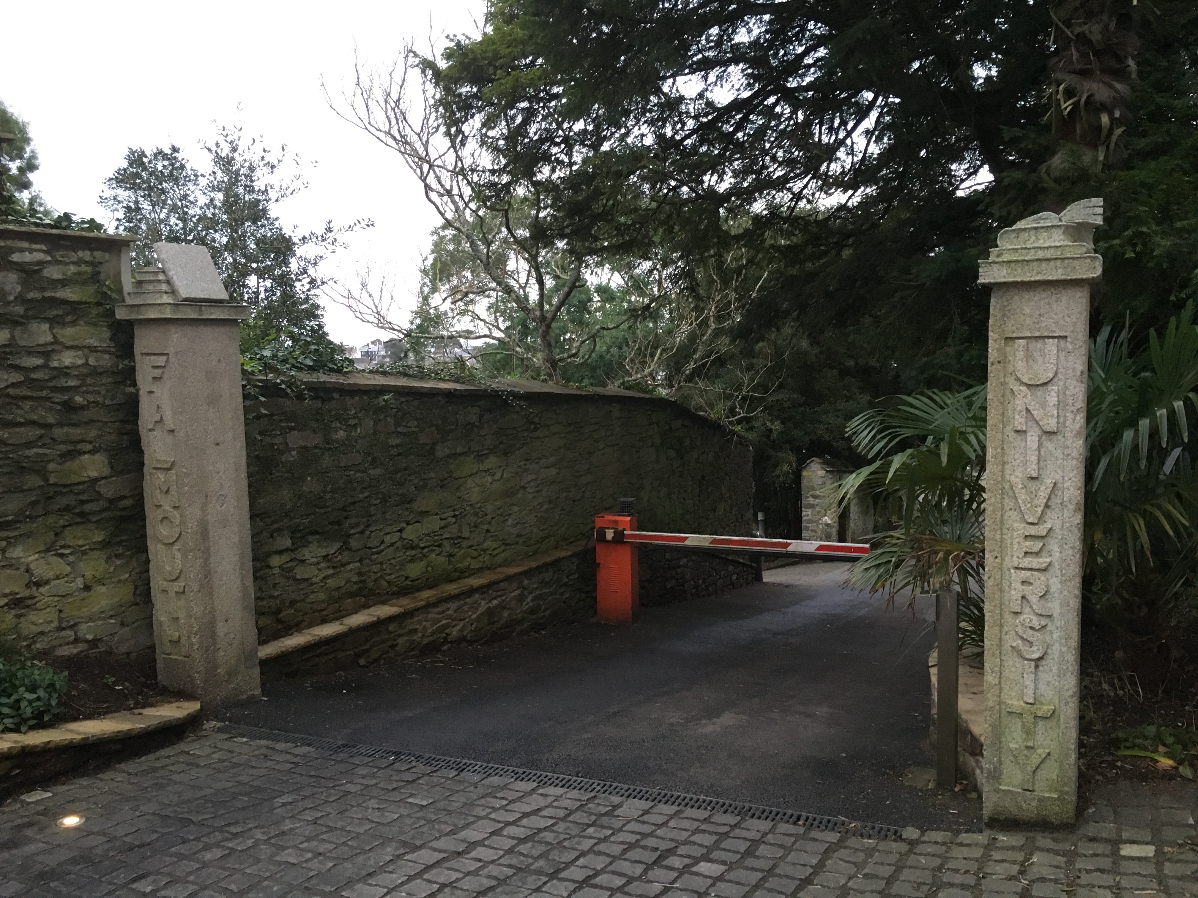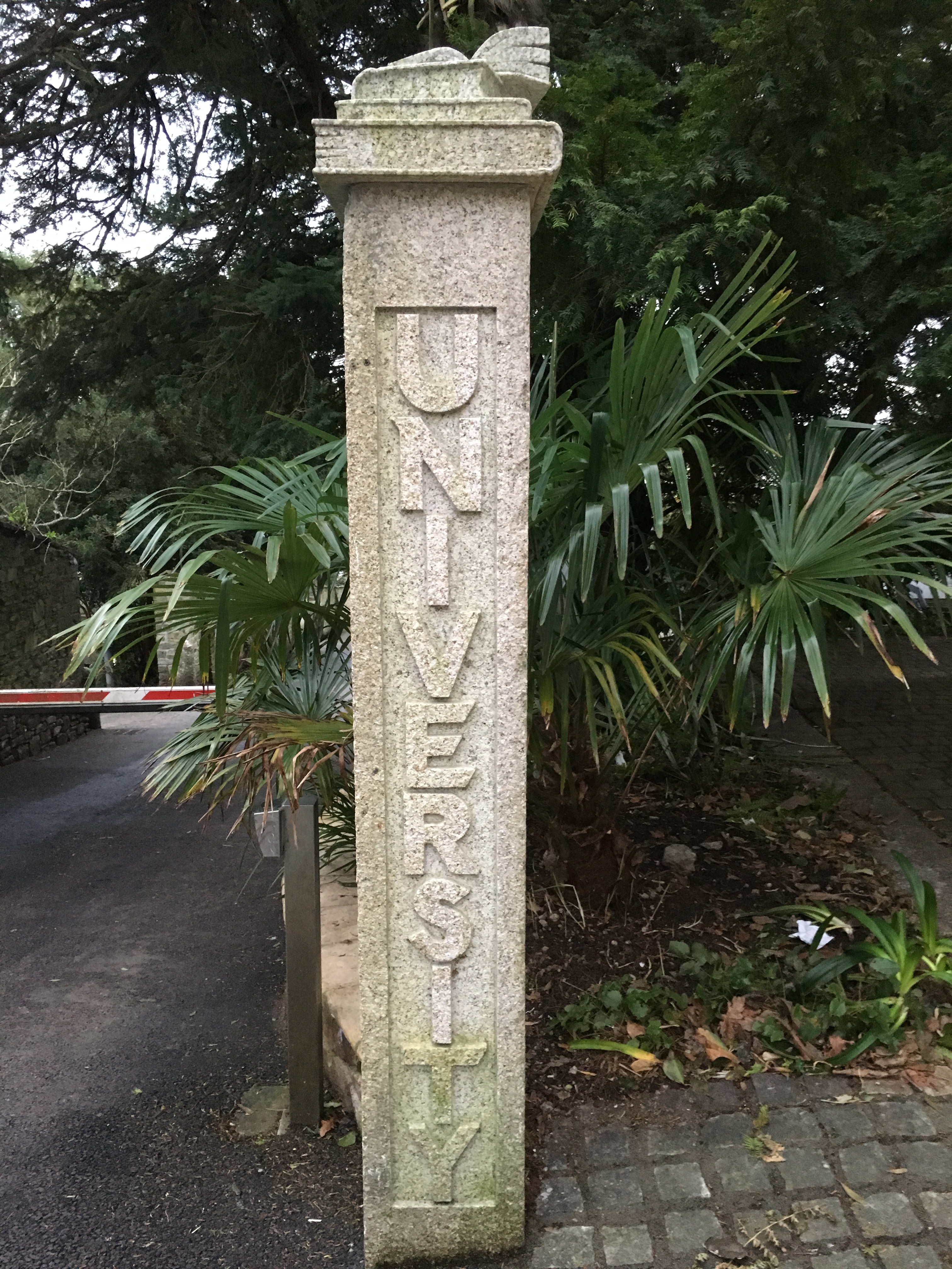 Falmouth University Woodlane Campus Entrance – Raised lettering and Stacked books capping stones