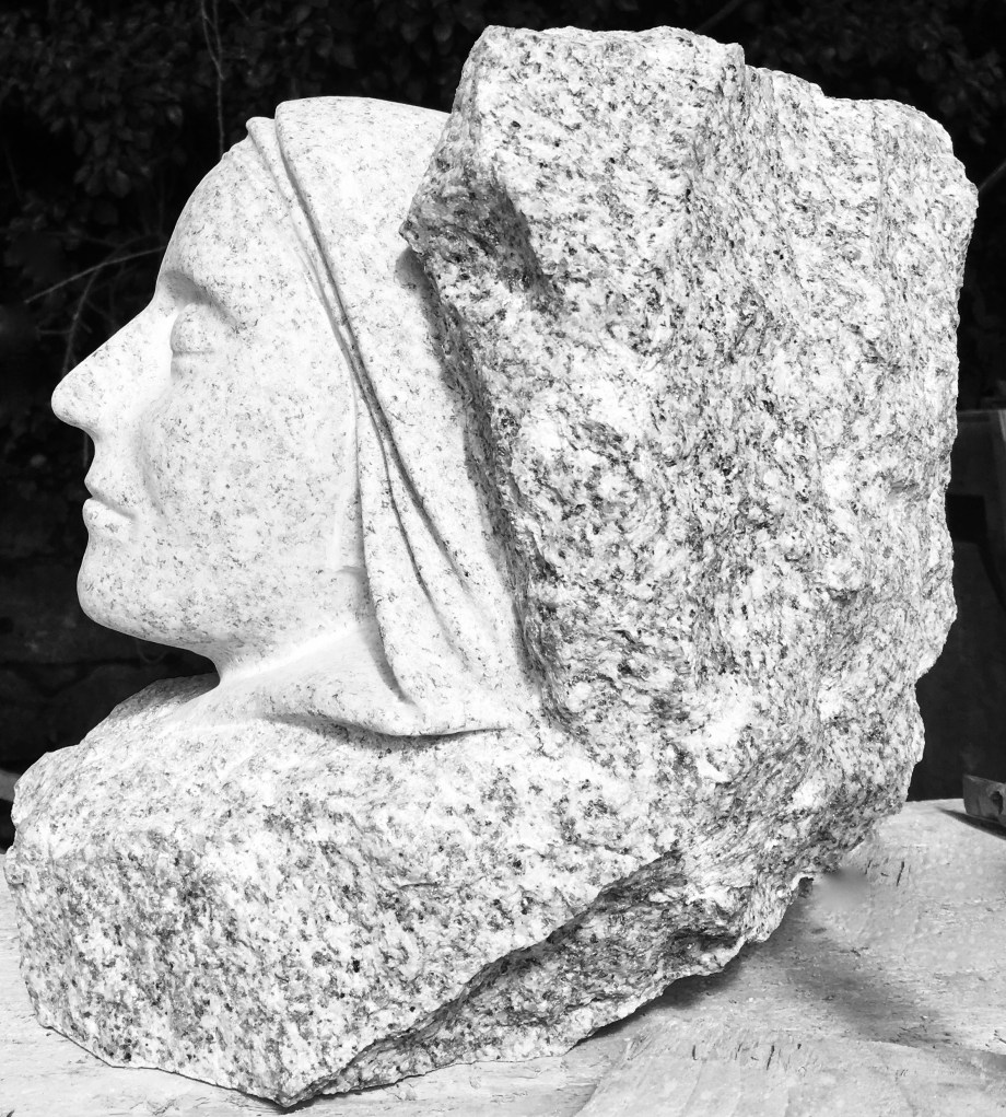 Five metre tall carving of St Piran, sculpted from Cornish, Breton and Irish granite. Sited at La Vallée des Saints in Brittany. 2018To Hatch a Crow, Cornish (Carnsew) Granite, (Height 2m), 2018
